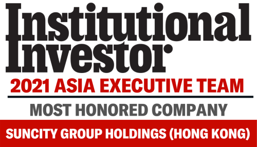 Suncity được vinh danh là “Công ty được tôn vinh nhất” trong Cuộc thăm dò ý kiến của Nhóm Điều hành châu Á năm 2021, được công bố bởi tạp chí Institutional Investor (Nhà đầu tư tổ chức).