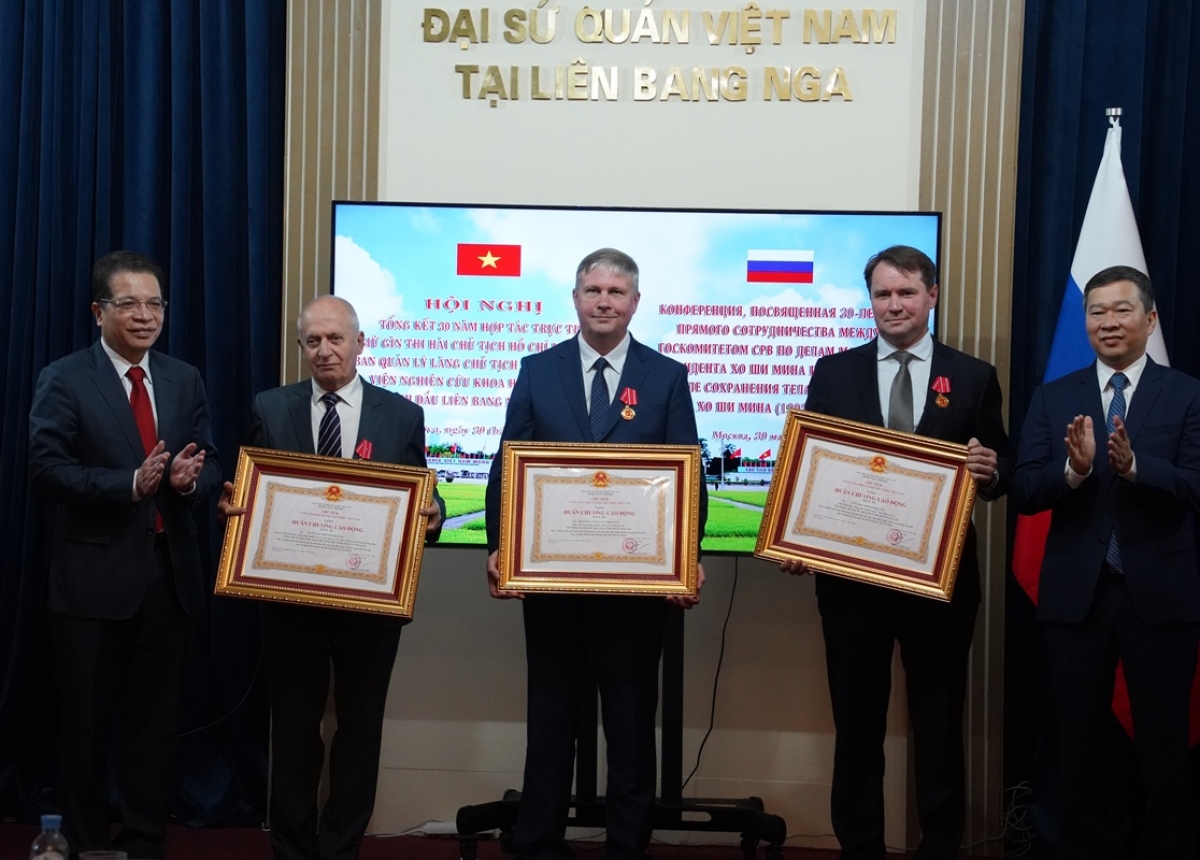 Nhân dịp này, thay mặt Đảng và Nhà nước Việt Nam, Đại sứ Đặng Minh Khôi và Thiếu tướng Bùi Hải Sơn đã trao tặng Huân chương Lao động Hạng 3 của Nhà nước CHXHCN Việt Nam cho Viện Nghiên cứu khoa học dược liệu và tinh dầu LB Nga và 3 cá nhân, Huân chương Hữu nghị cho 6 cá nhân là các cán bộ, chuyên gia Nga đã có thành tích xuất sắc trong 30 năm hợp tác trực tiếp thực hiện nhiệm vụ giữ gìn lâu dài, bảo vệ tuyệt đối an toàn thi hài Chủ tịch Hồ Chí Minh.