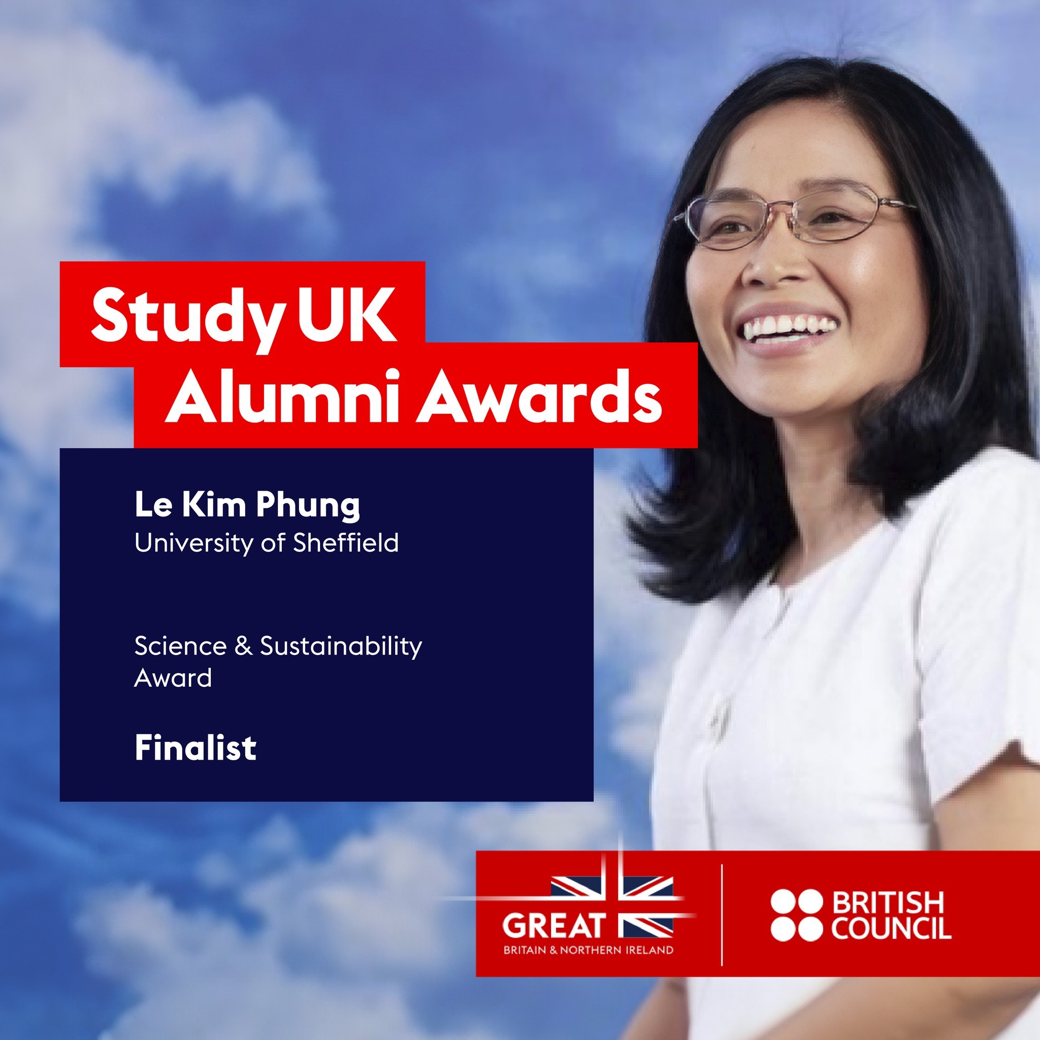 Trong đó giải Khoa học và bền Vững được trao cho PGS.TS Lê Kim Phụng, cựu sinh viên Trường University of Sheffield. PGS.TS Lê Kim Phụng hiện là Giám đốc Trung tâm Nghiên cứu công nghệ lọc hóa dầu (RPTC), kiêm Trưởng nhóm Nghiên cứu kỹ thuật bền vững, Đại học Bách khoa Thành phố Hồ Chí Minh (HCMUT). Sau khi tốt nghiệp Tiến sĩ Kỹ thuật xử lý hóa chất tại Anh năm 2008, chị Phụng không ngừng mở rộng nghiên cứu, ứng dụng công nghệ tiên tiến cho môi trường. Chị đã thu hút tài trợ quốc tế từ Mỹ, Nhật và nhiều quốc gia châu Á khác. Gần đây, chị vinh dự nhận giải Sáng tạo xuất sắc của Quỹ Hitachi 2022.