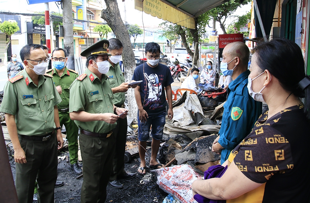 Chiều cùng ngày, Giám đốc Công an tỉnh An Giang đến thăm hỏi, động viên và hỗ trợ 5 hộ gia đình bị thiệt hại do hỏa hoạn xảy ra tại khóm Đông An, phường Đông Xuyên, TP Long Xuyên vào rạng sáng cùng ngày.