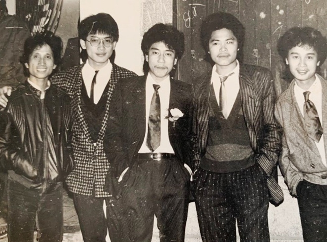 | Bố Huyền My( thứ 2 từ trái sang) không khác gì một tài tử. |