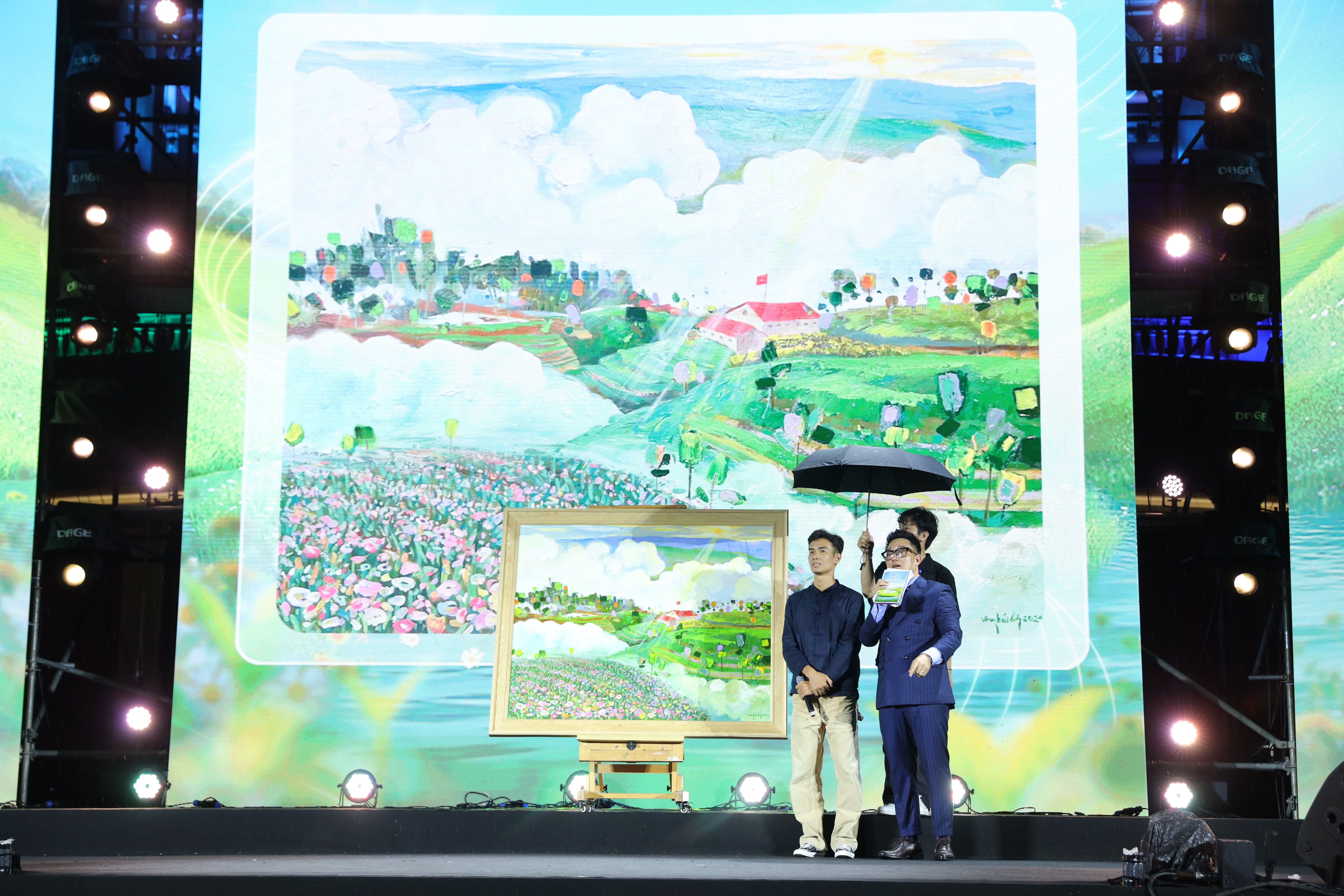 Đặc biệt, tại chương trình đã diễn ra hoạt động đấu giá hai sản phẩm là chiếc áo có chữ ký của 20 nghệ sĩ tham gia chương trình và bức tranh “Hồi sinh” của họa sĩ Vàng Hải Hưng.