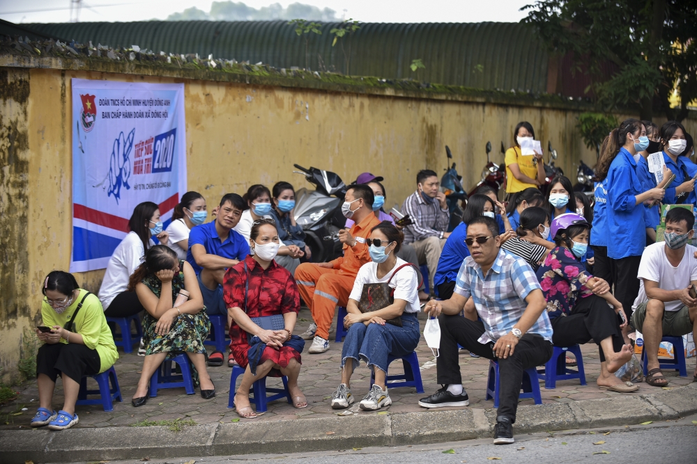 | Cha mẹ học sinh túc trực sẵn để chờ đợi kêt quả thi và đưa đón con em mình sau buổi thi đầu tiên. |