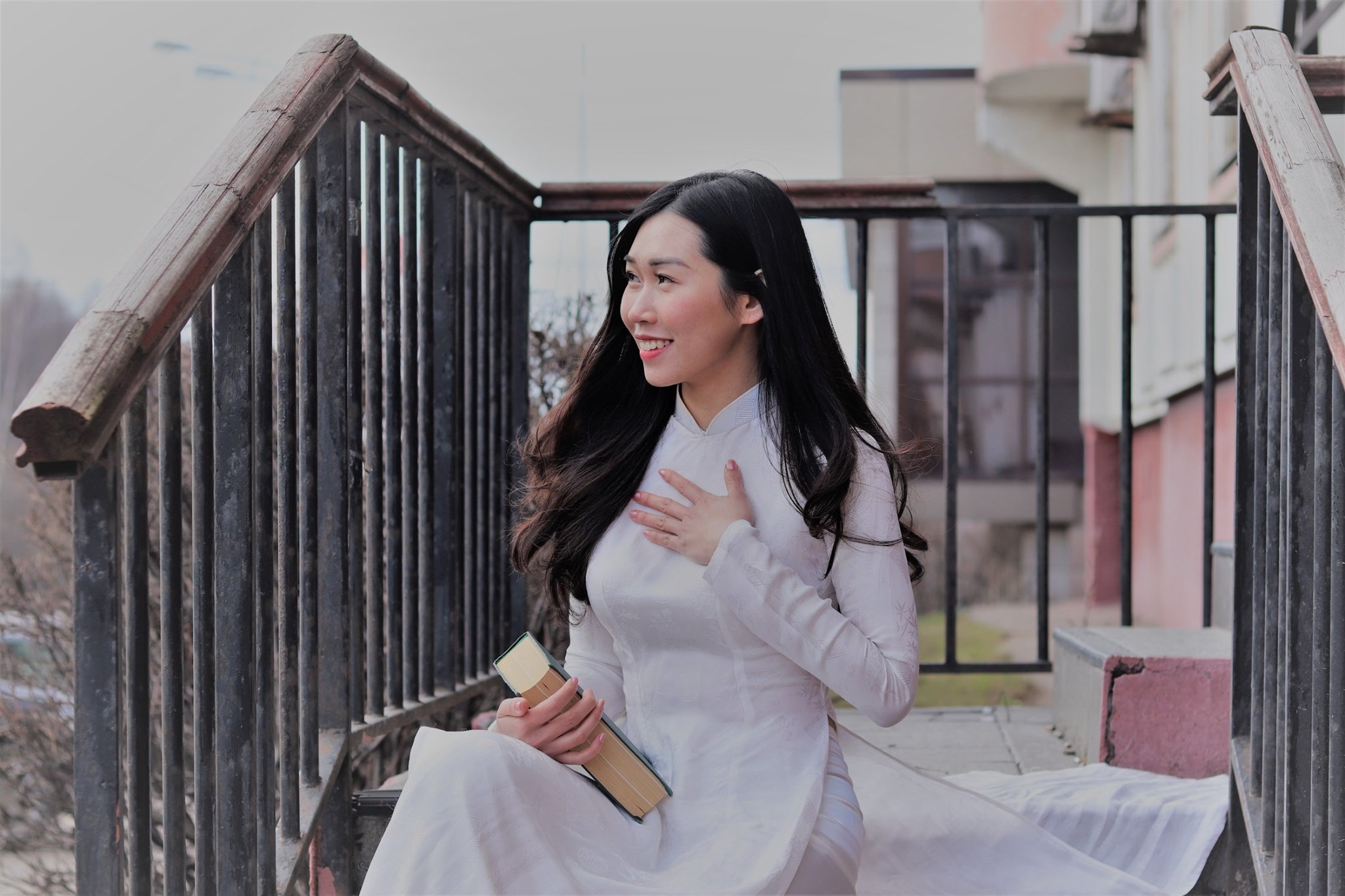 | Đỗ Bảo Nhung, Đại học Sư phạm quốc gia Matxcova: "Dù mình không đẹp, tóc ngắn, thì áo dài vẫn khiến mình trông thật dịu dàng và đủ tự tin quảng bá văn hóa Việt Nam đến với bạn bè quốc tế." |
