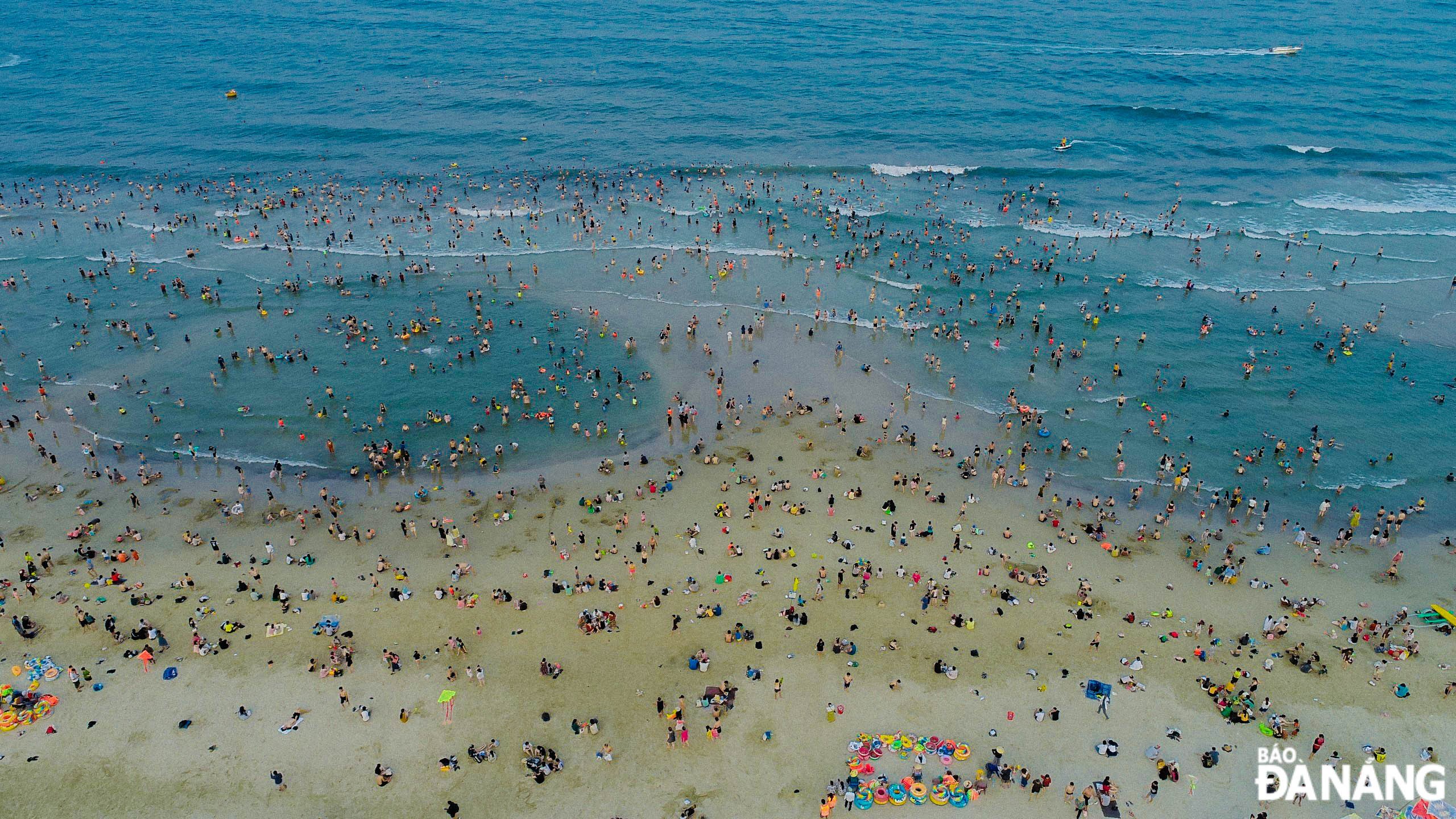 | Các bãi biển ở Đà Nẵng nườm nượp dòng người đổ về để "giải nhiệt". (Ảnh: Báo Đà Nẵng) |