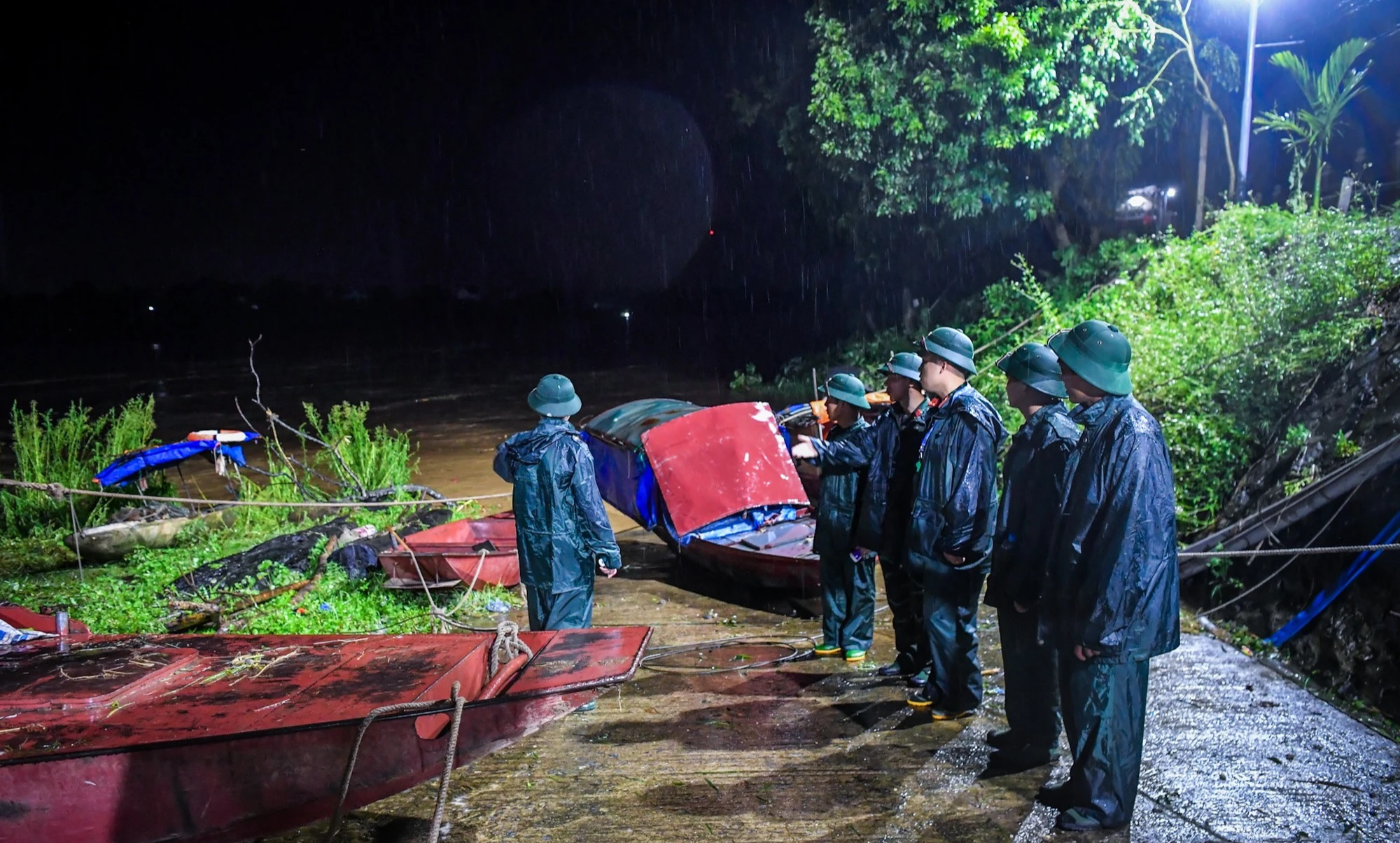 | Thực hiện yêu cầu của Thủ tướng Chính phủ về việc lắp đặt cầu phao bảo đảm giao thông tạm thời, phục vụ đi lại của nhân dân, vào 23 giờ đêm 9/9, lực lượng quân đội đã có mặt tiến hành khảo sát địa điểm, sẵn sàng bắc cầu phao cách vị trí xảy ra sự cố khoảng 800 m. (Ảnh: Báo Nhân dân) |