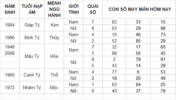 Con số may mắn hôm nay 11/12/2024 của tuổi Tỵ