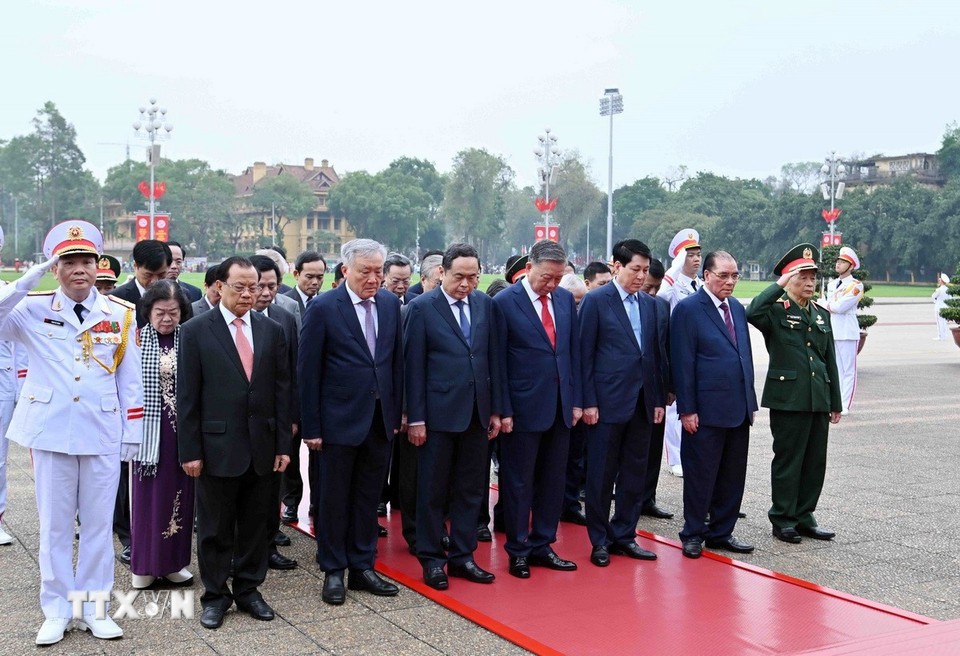 | Đoàn đại biểu lãnh đạo, nguyên lãnh đạo Đảng, Nhà nước do Tổng Bí thư Tô Lâm dẫn đầu đến đặt vòng hoa tưởng niệm các Anh hùng liệt sỹ. (Ảnh: An Đăng/TTXVN) |