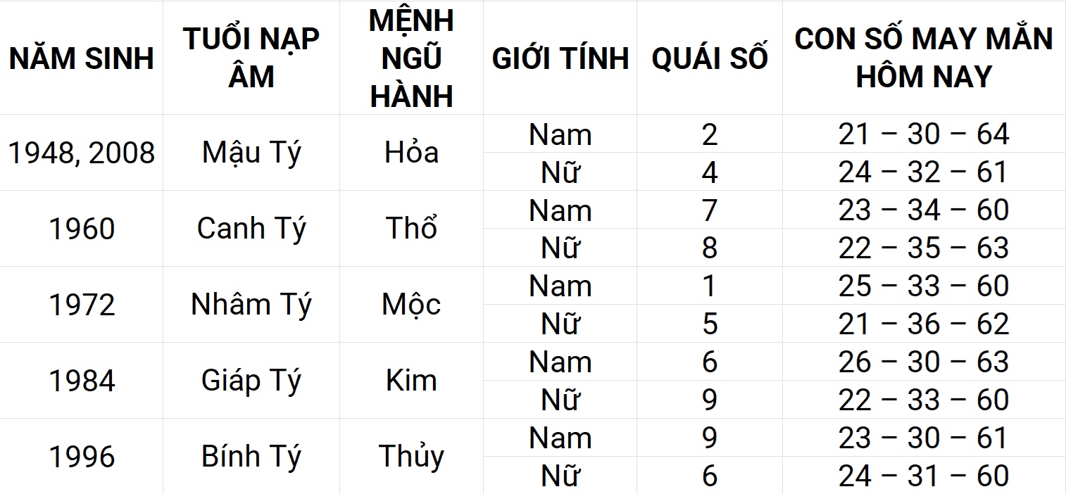 Con số may mắn hôm nay 20/5/2025 của tuổi Tỵ