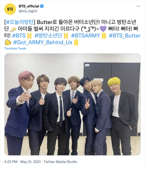 BTS cũng đã phát hành Tweet cho ‘Butter’ thông qua tay cầm chính thức của BTS,