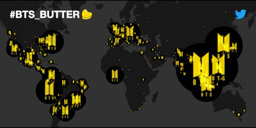 #BTSARMY với BTS và biểu tượng màu vàng của ARMY. Twitter cũng khiến ARMY bất ngờ khi phát hành hai hashtag mới #SmoothLikeButter, với hình ảnh bơ chảy phản chiếu lời bài hát và #