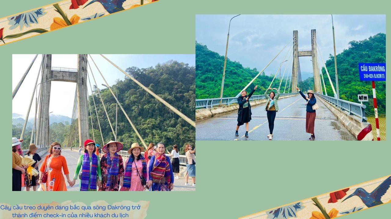 Cây cầu treo duyên dáng bắc qua sông Đakrông là điểm kết nối quan trọng tuyến đường huyết mạch từ Quốc lộ 9 – Quốc lộ 14A vào một số tỉnh Đông Nam Bộ và Tây Nguyên (tuyến trục dọc xuyên Việt có chiều dài sau Quốc lộ 1). Đồng thời, kết nối Quốc lộ 15D với Cửa khẩu quốc tế La Lay qua Quốc lộ 15 A của Lào (được đưa vào sử dụng năm 2012) đã rút ngắn cự ly vận chuyển từ các tỉnh Nam Lào về miền Trung Việt Nam cả đi lẫn về 914 km. |