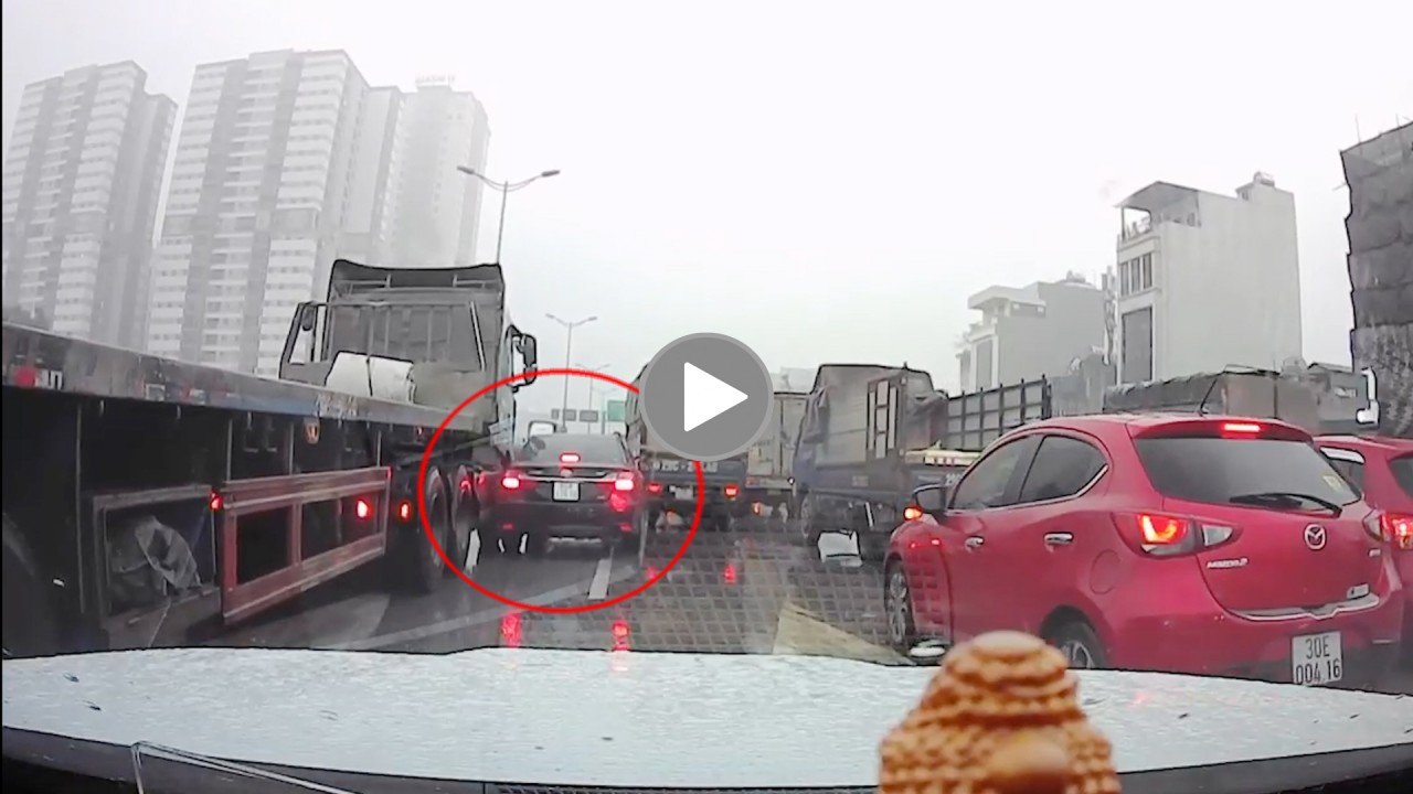Đường đông đúc nhưng tài xế xe con vẫn len lỏi chen lấn, tạt đầu xe container để rồi nhận ngay cái kết hối hận không kịp.