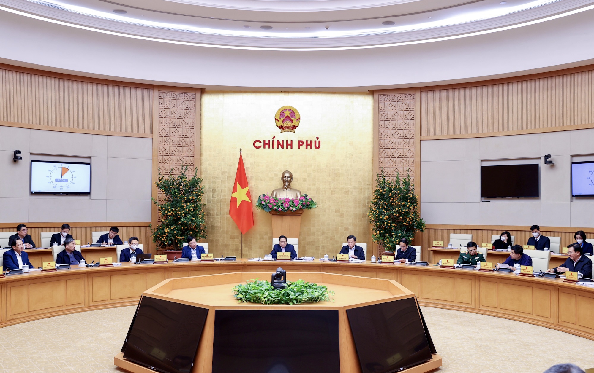 Thủ tướng Phạm Minh Chính chủ trì phiên họp Chính phủ chuyên đề xây dựng pháp luật tháng 2/2022. Ảnh: VGP/Nhật Bắc