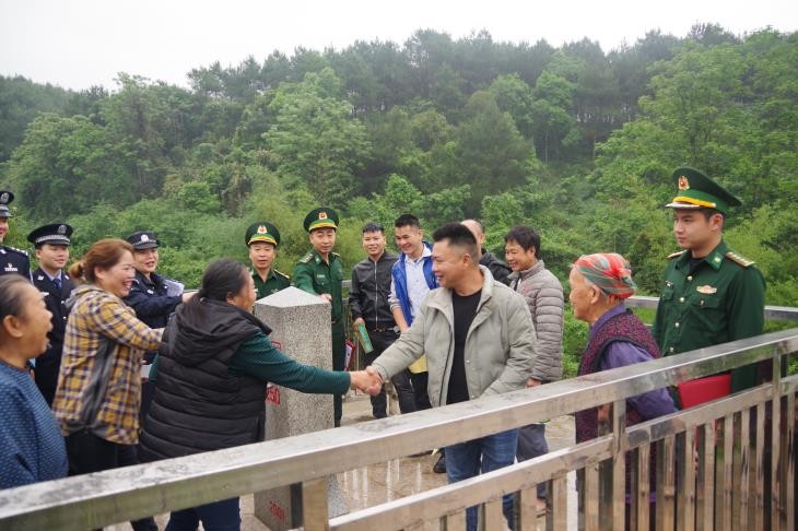 | Nhân dân hai bên biên giới vui mừng gặp nhau tại buổi tuyên truyền hồi tháng 4/2023. (Ảnh: Báo Biên phòng) |