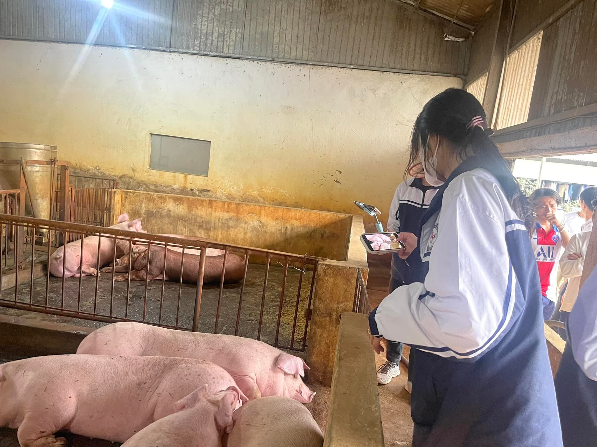 | Thăm quan mô hình trang trại của bà con nhân dân xã Thọ Lộc, các em được tìm hiểu về cuộc sống lao động, cách thức trồng trọt, chăn nuôi của người dân địa phương, thực hành trau dồi vốn ngôn ngữ tiếng Việt thông qua việc nghe – hiểu- giao tiếp với bà con và ghi chép nhật kí học tập (Ảnh: Diễn đàn xã Thọ Lộc). |