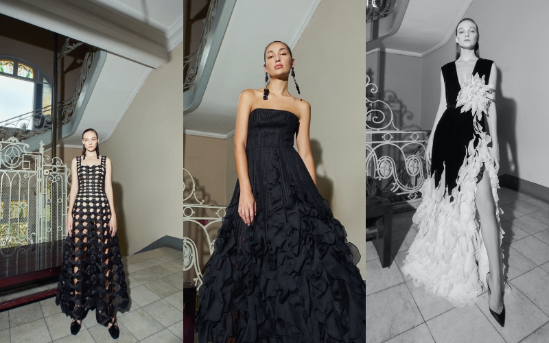 Xuyên suốt bộ sưu tập, hình ảnh chiếc nơ được xuất hiện linh hoạt trong nhiều hình dạng khác nhau. Từ những chiếc nơ 3D mềm mại bay bổng được đính nổi, dáng hình học, hay nơ 2D to bản được thêu ấn tượng. Tất cả đều gợi liên tưởng đến sắc thái của người phụ nữ: khi nữ tính khi gai góc, lại có lúc mạnh mẽ và khác lạ.