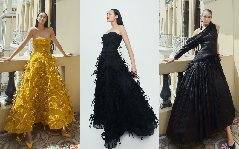 Sự cầu kì trong việc chạy từng sợi dây vải taffeta trên nền organza, ren hay lưới để tạo ra chuỗi hoa văn lượn sóng đầy tính nữ, phần nào cho thấy mức độ tinh xảo trong các sáng tạo lần này.