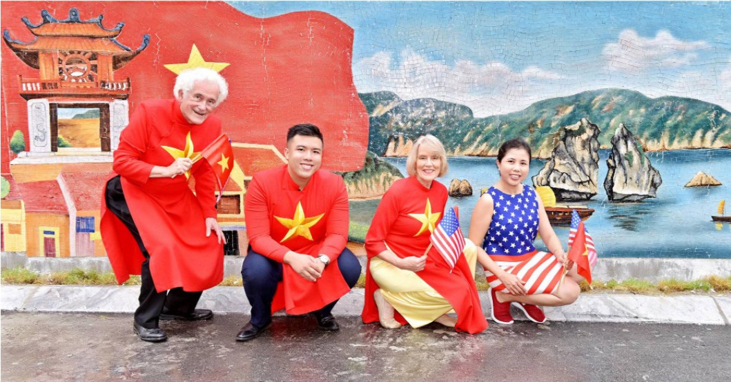 Trên bức tranh gốm, các biểu tượng di sản thiên nhiên và văn hóa của Hoa Kỳ và Việt Nam được họa sỹ thể hiện đan xen vào nhau một cách đặc biệt. Khuê Văn Các nổi bật trên nền quốc kỳ Việt Nam được đặt song song với Điện Capitol, tòa nhà Quốc hội Mỹ ở Washington DC đan cài với đầm sen nở rộ của thủ đô Hà Nội. Văn miếu Quốc Tử Giám, trường Đại học đầu tiên của Việt Nam cùng sánh với Đại học Havard danh tiếng của Hoa Kỳ.