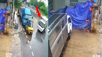 Camera giao thông: Ôtô bay chạy thử nghiệm đâm vào nhà kho móp cả đầu