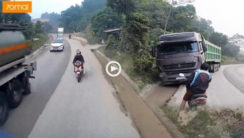 Camera giao thông: Tài xế xe tải mở mở bất cẩn khiến người phụ nữ suýt mất mạng oan uổng dưới bánh ô tô