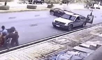 Rất may mắn, một người đàn ông đã chạy ngay đến đỡ một phần đầu xe tải. Hai người đã rất nhanh thoát khỏi khu vực nguy hiểm trước khi chiếc xe tải đổ sập.