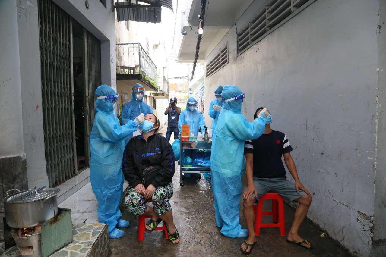 | Nhân viên y tế lưu động xuống địa bàn test nhanh COVID-19 cho người dân. |
