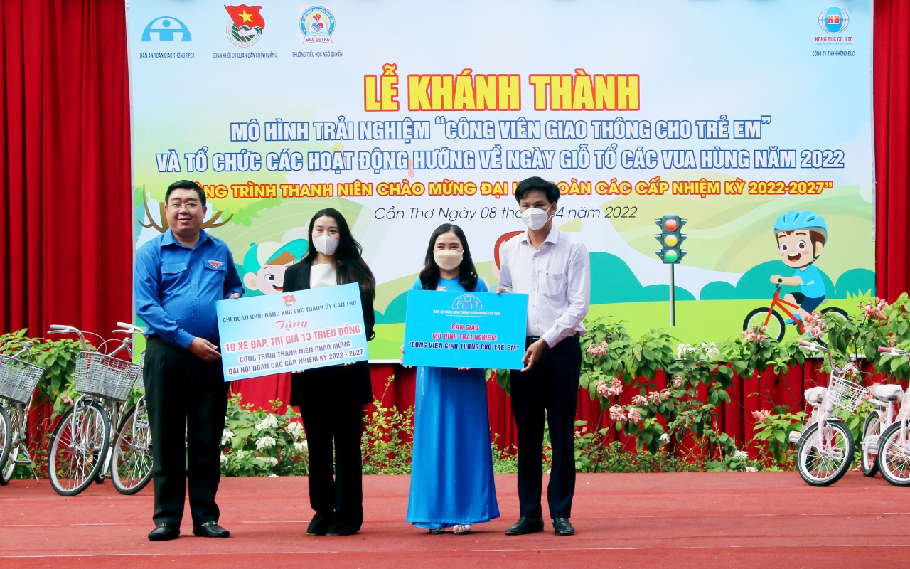 | Ban ATGT TP Cần Thơ bàn giao mô hình trải nghiệm “Công viên giao thông cho trẻ em” cho nhà Trường; Chi đoàn Khối Đảng khu vực Thành ủy Cần Thơ trao tặng nhà trường 10 xe đạp. |