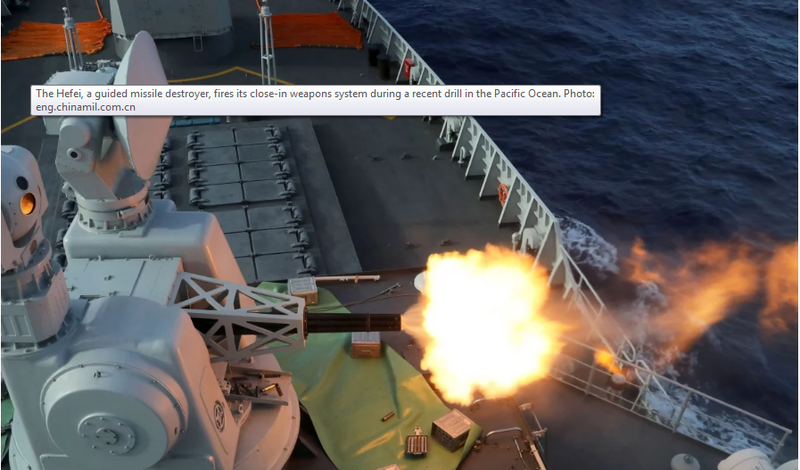 Tàu khu trục trang bị tên lửa dẫn đường Hefei của Quân Giải phóng Nhân dân Trung Quốc trong một cuộc diễn tập. Ảnh: SCMP |