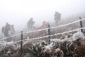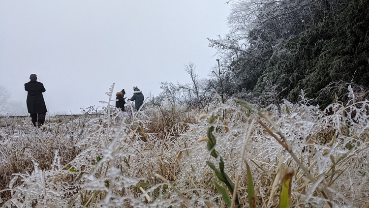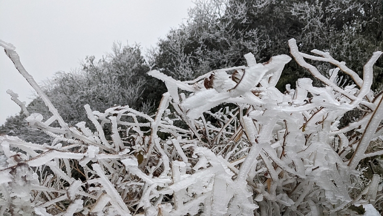 | Băng tuyết tại đỉnh Phja Oắc, Cao Bằng sáng 8/1 |