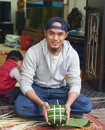 | Anh Saif Al din tự tay gói bánh chưng truyền thống của Việt Nam (Ảnh: NVCC) |