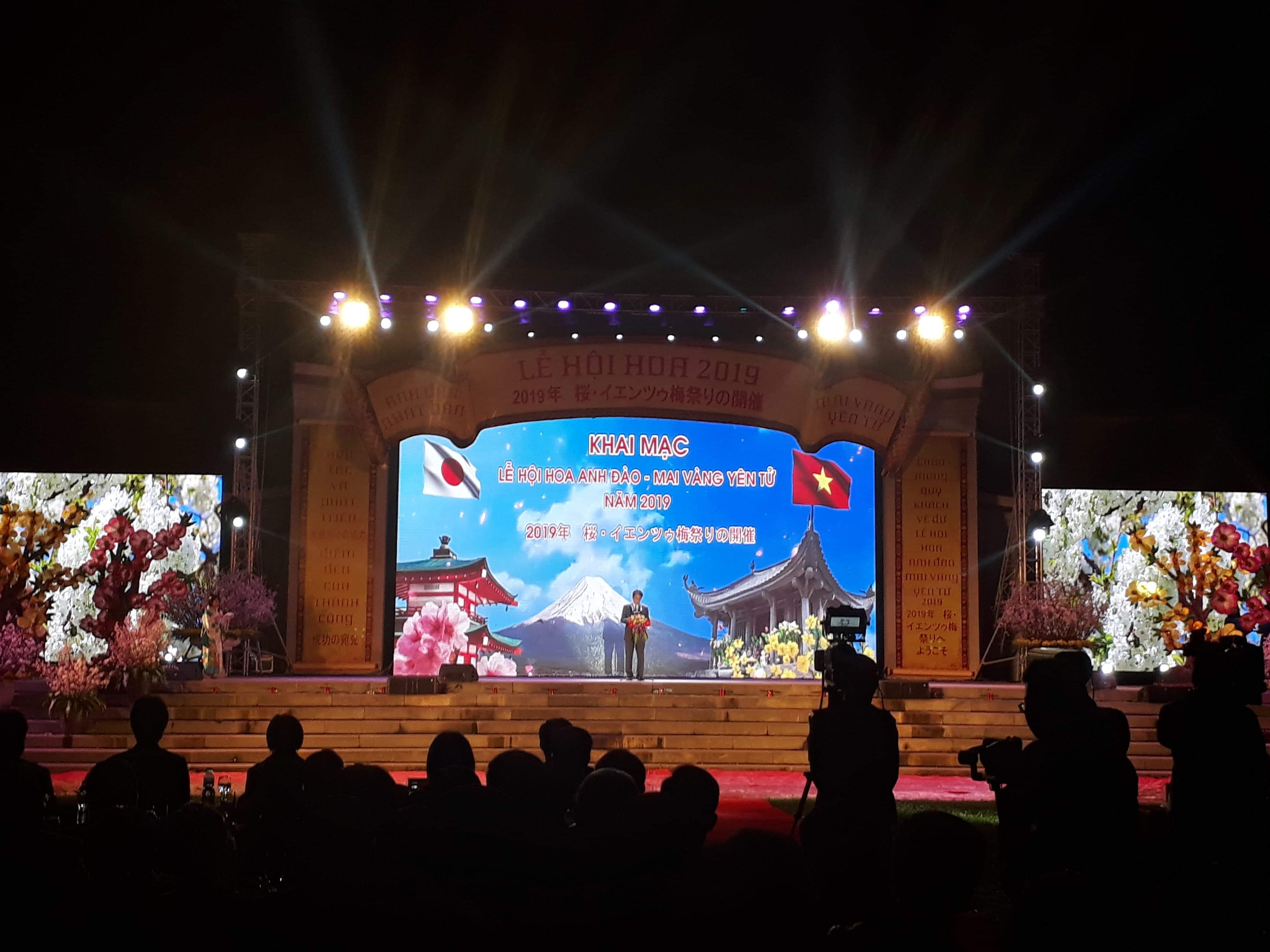 Đêm khai mạc Lễ hội hoa Anh đào - Mai vàng Yên Tử 2019 diễn ra trang trọng, thắm tình hữu nghị giữa hai quốc gia Việt Nam - Nhật Bản với chương trình nghệ thuật được dàn dựng công phu, những tiết mục ca múa nhạc đặc sắc, mang đậm dấu ấn văn hoá của hai quốc gia, hướng tới kỷ niệm 46 năm thiết lập quan hệ ngoại giao Việt Nam – Nhật Bản.