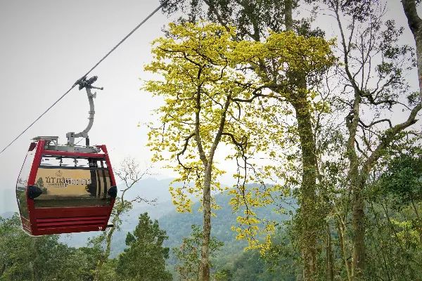 Đặc biệt hơn, chỉ tại Yên Tử, du khách mới có thể chiêm ngưỡng sắc hoa vàng rực rỡ của những cây đại lão mai vàng khi ngồi trong cáp treo 360 độ, lướt trên thảm rừng xanh mướt phía trên rừng quốc gia Yên Tử.