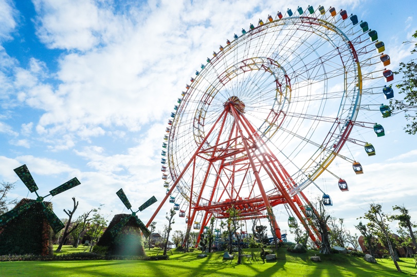 Du khách có thể nhìn thấy Sky Wheel khổng lồ từ bất cứ góc độ nào tại Vinpearl. Đây là nơi lý tưởng nhất để ngắm toàn cảnh vịnh Nha Trang, đặc biệt là trong thời khắc hoàng hôn.