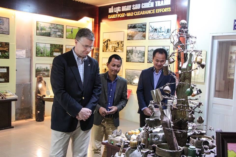 Đại sứ Mỹ Kritenbrink (trái) thăm Trung tâm triển lãm hậu quả bom mìn thuộc dự án Project Renew, công trình do quỹ CCF tài trợ.