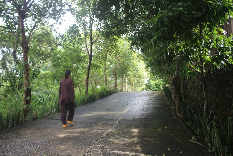 | Con đường nhỏ dạo bộ trong khuôn viên chùa Linh Quang. |