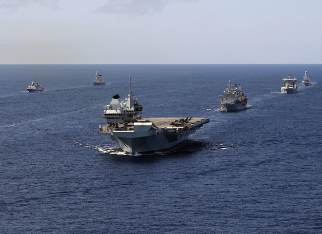 Trong hành động mang tính biểu tượng mạnh mẽ, chuyến tuần tra đại dương đầu tiên của tàu tàu sân bay HMS Nữ hoàng Elizabeth hiện đại nhất của Hải quân Hoàng gia Anh với chi phí chế tạo hơn 3 tỷ bảng Anh (tương đương 4,26 tỷ USD) sau khi được đưa vào biên chế là dẫn đầu nhóm tác chiến gồm 2 tàu khu trục, 2 khinh hạm, 1 tàu ngầm và 2 tàu hỗ trợ đi vào Biển Đông hồi tháng 7-2021. Cao ủy Anh tại