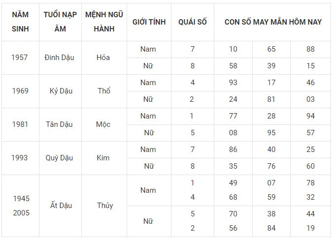 Con số may mắn hôm nay 10/12/2023 của tuổi Dậu