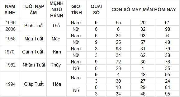 Con số may mắn hôm nay 11/7/2024 của tuổi Tuất