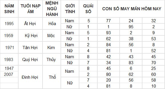 Con số may mắn hôm nay 11/7/2024 của tuổi Hợi