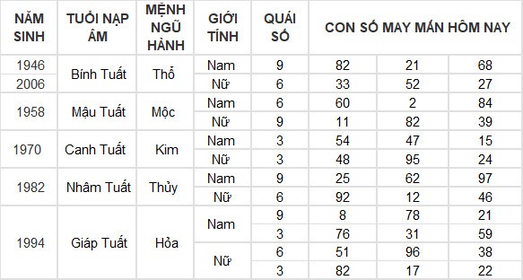 Con số may mắn hôm nay 12/7/2024 của tuổi Tuất