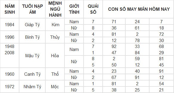 Con số may mắn hôm nay 12/7/2024 của tuổi Tỵ