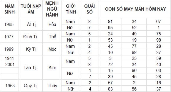 Con số may mắn hôm nay 12/8/2024 của tuổi Tỵ
