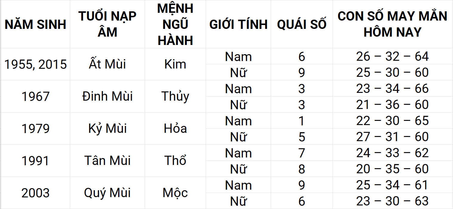 Con số may mắn hôm nay 13/5/2025 của tuổi Mùi