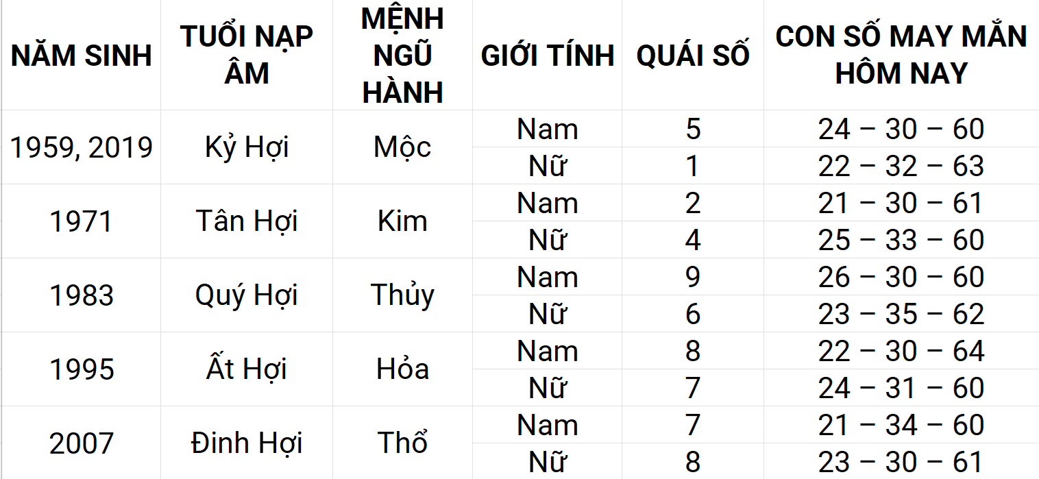 Con số may mắn hôm nay 15/5/2025 của tuổi Hợi