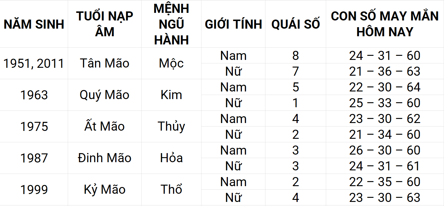 Con số may mắn hôm nay 15/5/2025 của tuổi Mão
