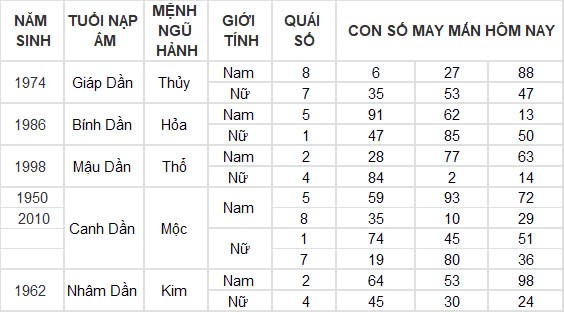 Con số may mắn hôm nay 18/12/2024 của tuổi Dần