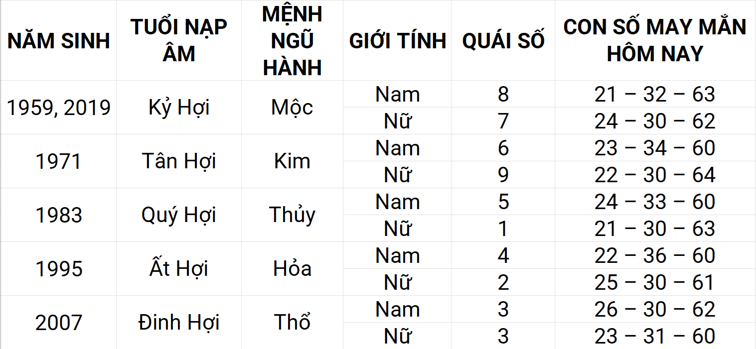 Con số may mắn hôm nay 20/5/2025 của tuổi Hợi