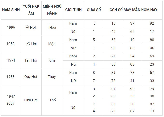 Con số may mắn hôm nay 24/1/2024 của tuổi Hợi