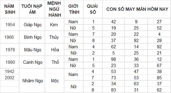 Con số may mắn hôm nay 25/10/2024 của tuổi Ngọ